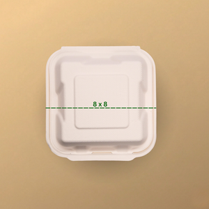 The EcoGreenz 8x8 Bagasse Clamshell Box is a heavy-duty biodegradable food container ideal for packing burgers, combos, rolls, sandwiches and full meal portions. Designed with a secure hinged lid, it ensures safe and spill-free delivery.